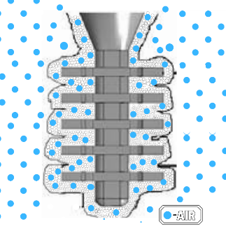 - The air within the porous shell gets pushed towards the surface of the wax. This air gets compressed between the steam and wax creating a layer of compressed air between the steam and the wax pattern.