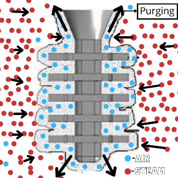 - If the air in the autoclave is first purged (removed) and then steam is charged into the chamber. This insulating layer of compressed air can be minimized.
